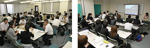 続いて行われた分科会では、①福祉系高校のかかえる課題、②地域とつながる~ボランティア活動と福祉の学び~、③青年期のキャリア形成~福祉系高校?大学生の進路~、がテーマに設定され、それぞれの課題に取り組む教員らによる事例報告やディスカッションが進められました。第一分科会では、社会福祉士?介護福祉士法の改正などに伴う指導要領や教育課程の変更と対応、地域?学校間の連携を深めていくことなどが課題に挙げられました。第二分科会では、東日本大震災の復興支援ボランティア体験の事例をもとに、高校生と地域の関わりと学びについて議論しました。第三分科会は、福祉系の仕事を志す高校生と大学生のキャリア形成について取り上げ、様々な高校の福祉系課程で実施されているキャリア教育の概要や現場教員の声が紹介されたほか、本学の教員養成課程での調査データなどが紹介されました。
